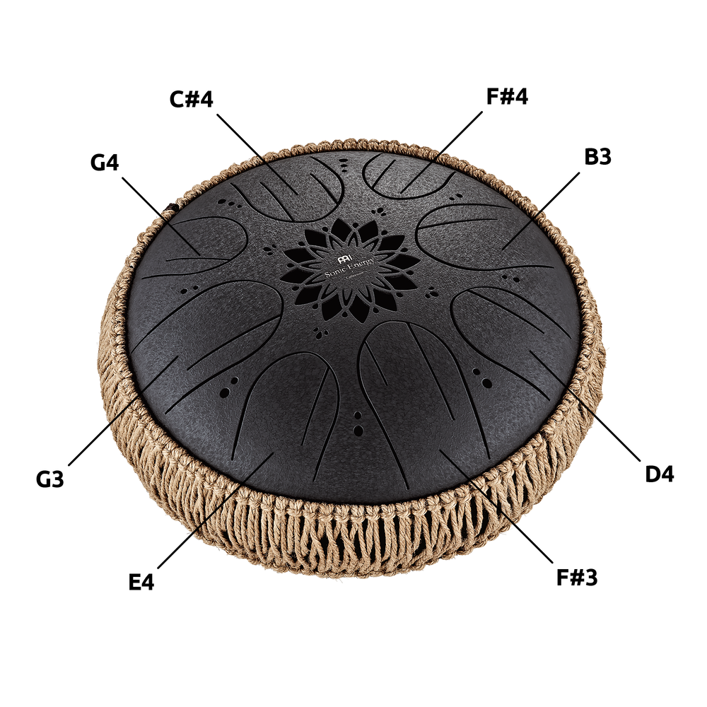 Octave Steel Tongue Drums 10" Medium Octave Steel Tongue Drum, B Minor, 8 Notes, 432 Hz, Black - MOSTD1BK
