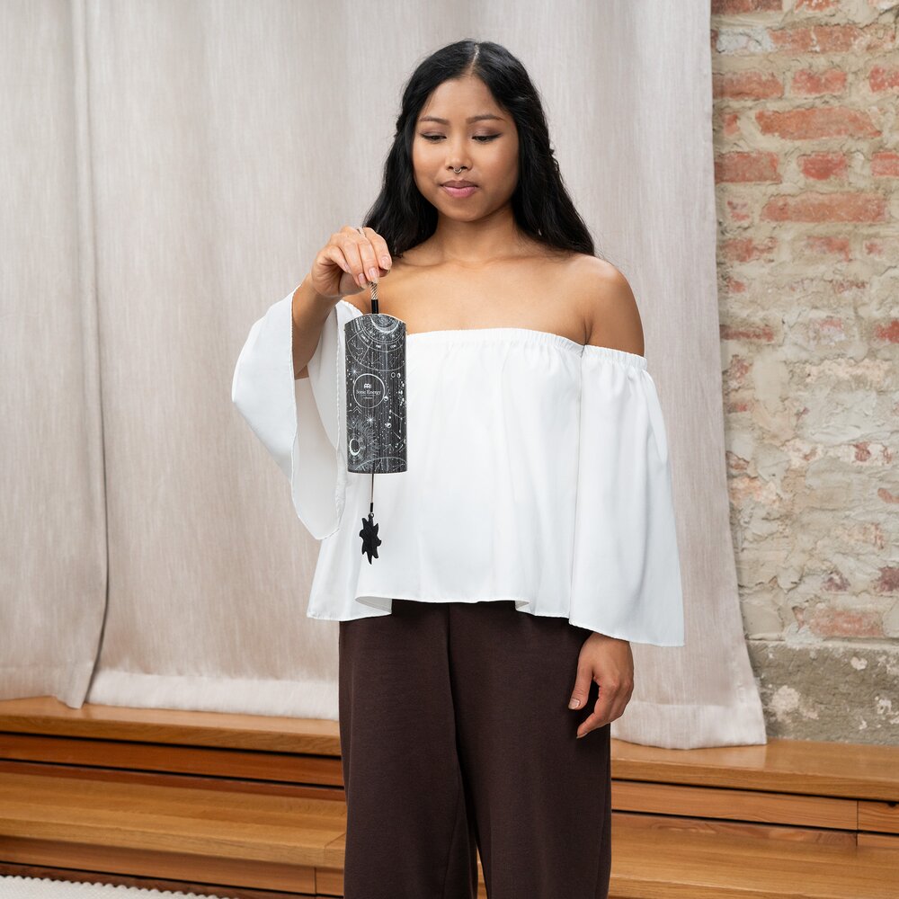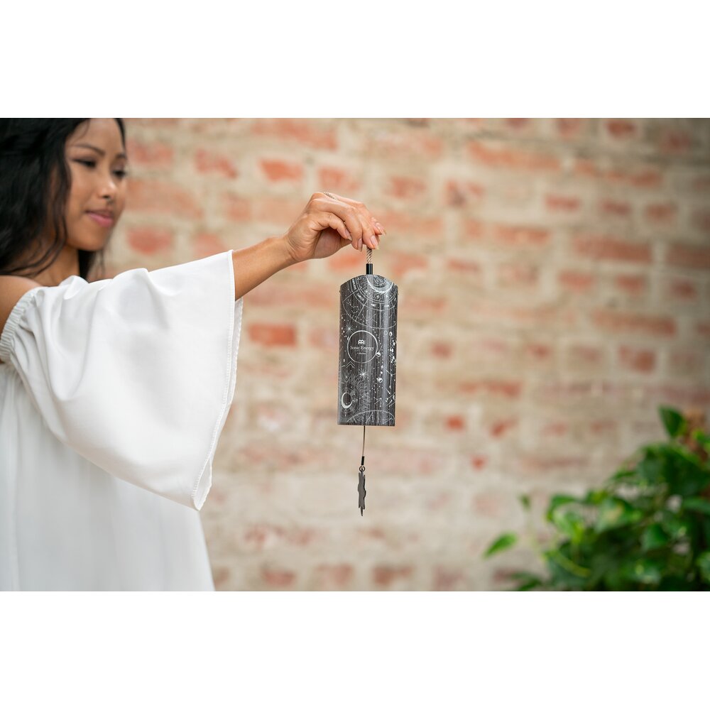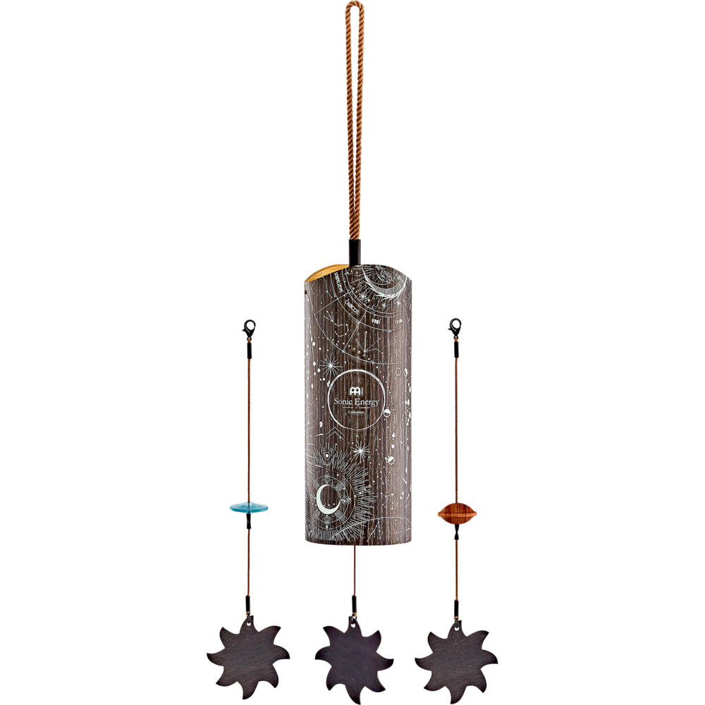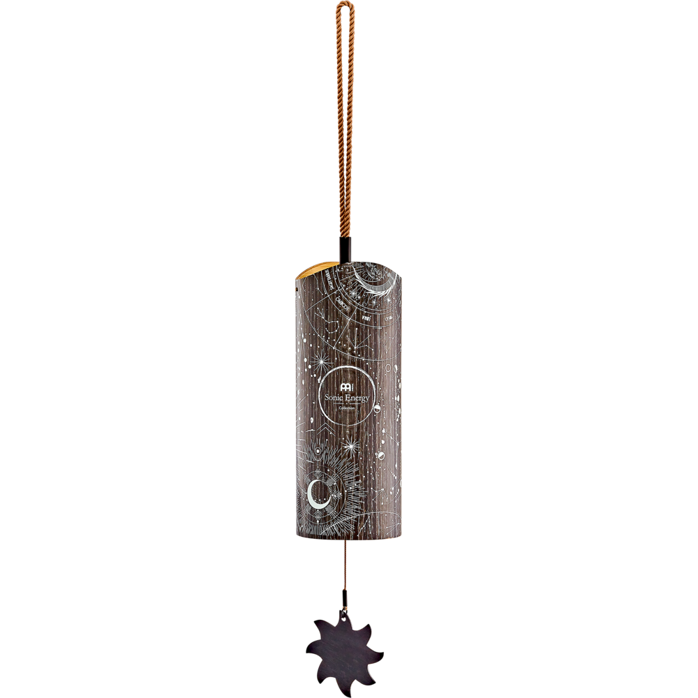 The Meinl Sonic Energy Cosmic Bamboo Chimes produce soft resonant tones that fill your space with serene sound. Use for meditation, sound baths, and yoga. Or create a relaxing space at home for reflection. Hold the cord and gently swing the chime to activate its sound. Inside is a pendulum and a group of metal tines tuned to specific pitches. Easily modify the tone by switching between the two pendulums: acrylic (hard) and wood (soft). Insert the clasp end of the pendulum through the bottom of the chimes. Attach the clasp to the hook on the wood crossbar. Pull the braided cord straight and pick it up to play the chimes. Available in four tunings matched to the time of day: Aurora (morning), Sol (day), Luna (evening), and Stella (night). Combine two or more to build contrast in mood. Each chime comes with two additional spare pendulums (acrylic, wood).