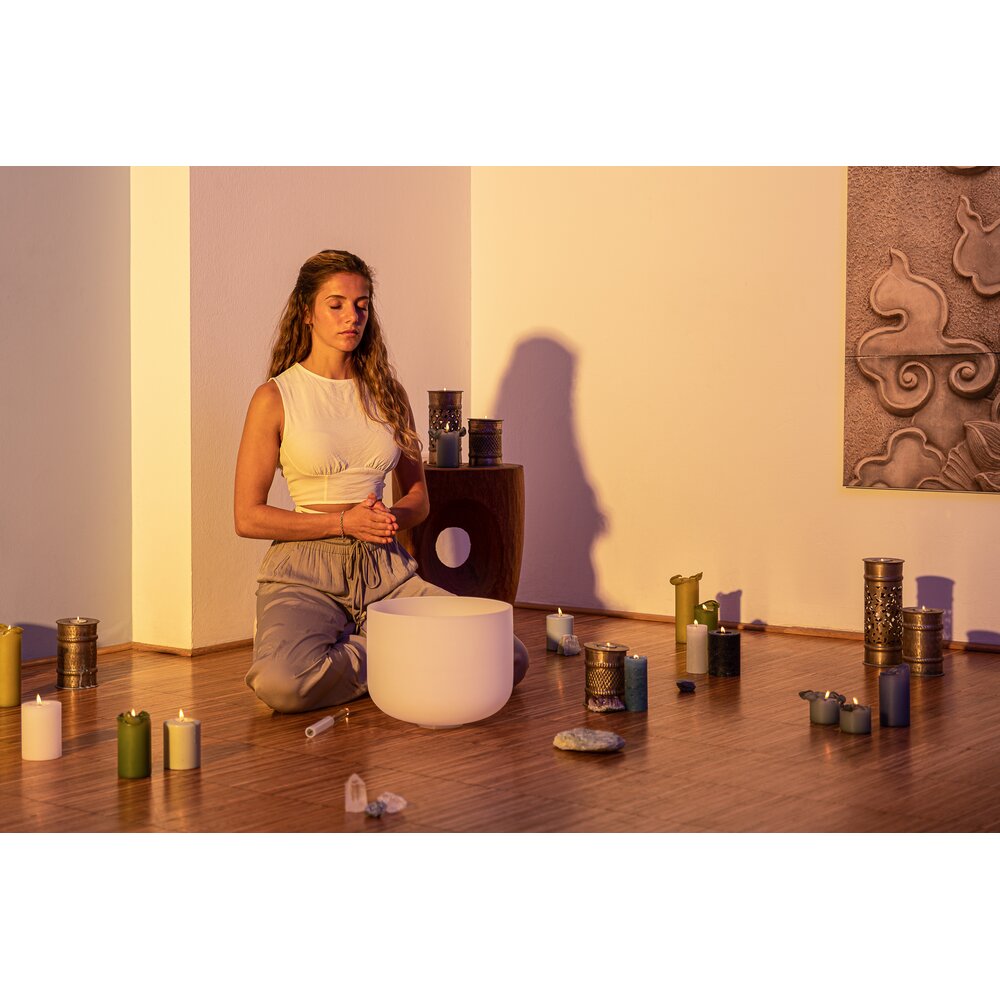 The white-frosted Meinl Sonic Energy Crystal Singing Bowls made of high-purity quartz create a very pleasant aura with their sound and design. Their long-lasting, spherical tone spreads when the singing bowl is gently tapped or rubbed so that the energy can be felt in the entire surrounding. All Crystal Singing Bowls are delivered with a silicone ring to avoid possible impact and to ensure the best resonance.