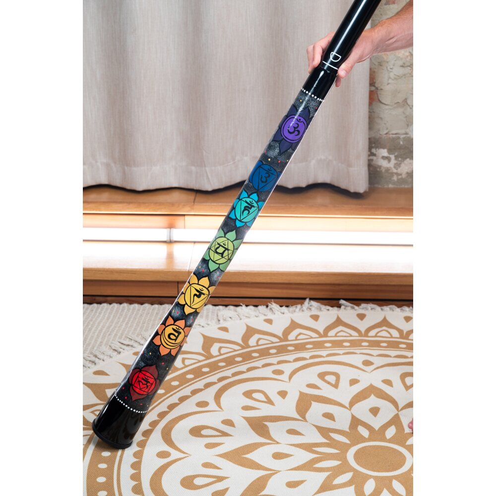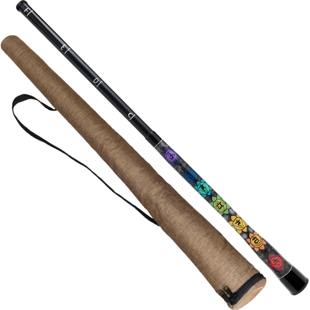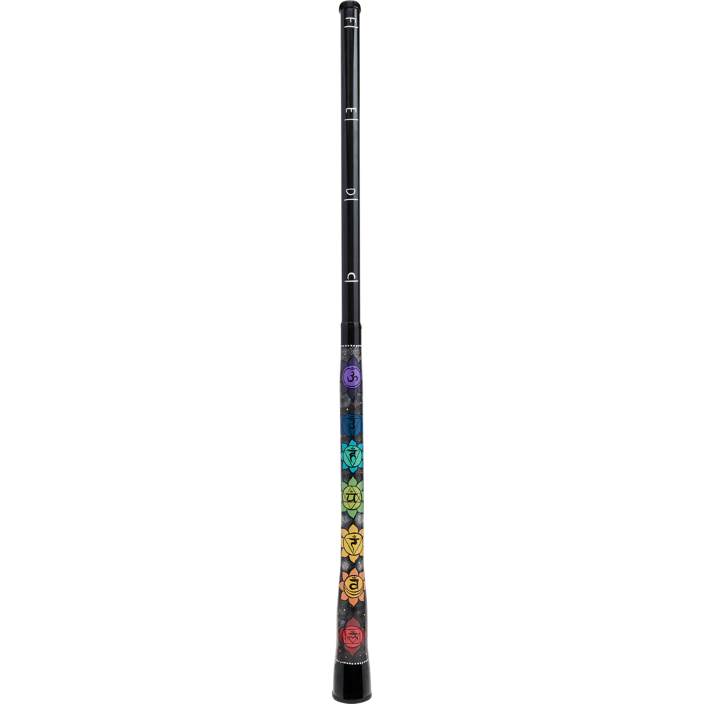 The Meinl Sonic Energy Chakra Didgeridoo is a lightweight, synthetic instrument that connects deep sound with spiritual symbolism. Tuned to the notes C (Root Chakra), D (Sacral Chakra), E (Solar Plexus Chakra), and F (Heart Chakra), it features hand-painted chakra symbols for each tone. This didgeridoo can be fully extended to reach note F at its longest length or fully retracted to play note C at its shortest. It can even be adjusted while playing, allowing smooth transitions and gliding between tones for dynamic sound journeys. Complete with a practical soft bag, the Meinl Sonic Energy Chakra Didgeridoo is perfect for meditation, sound healing, or experimental performances.