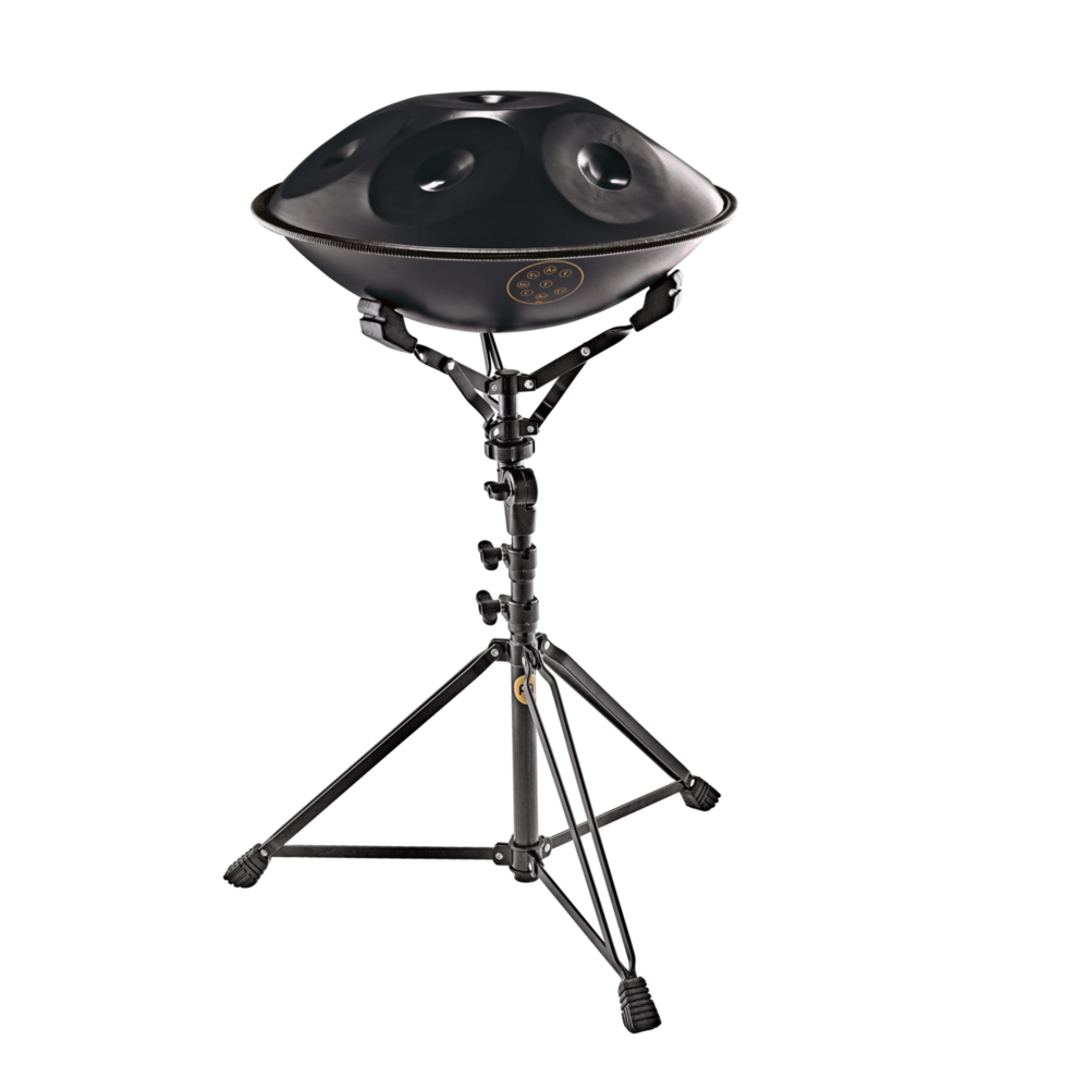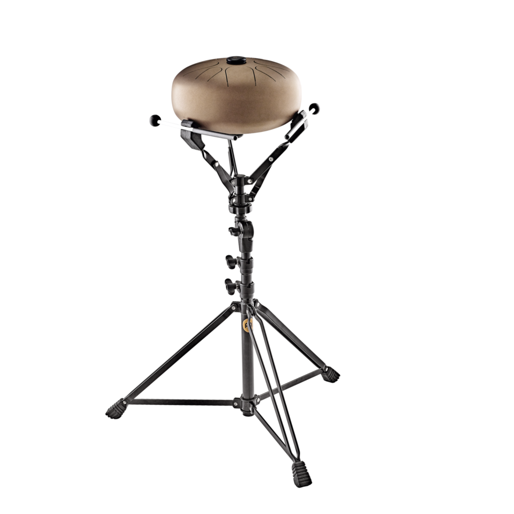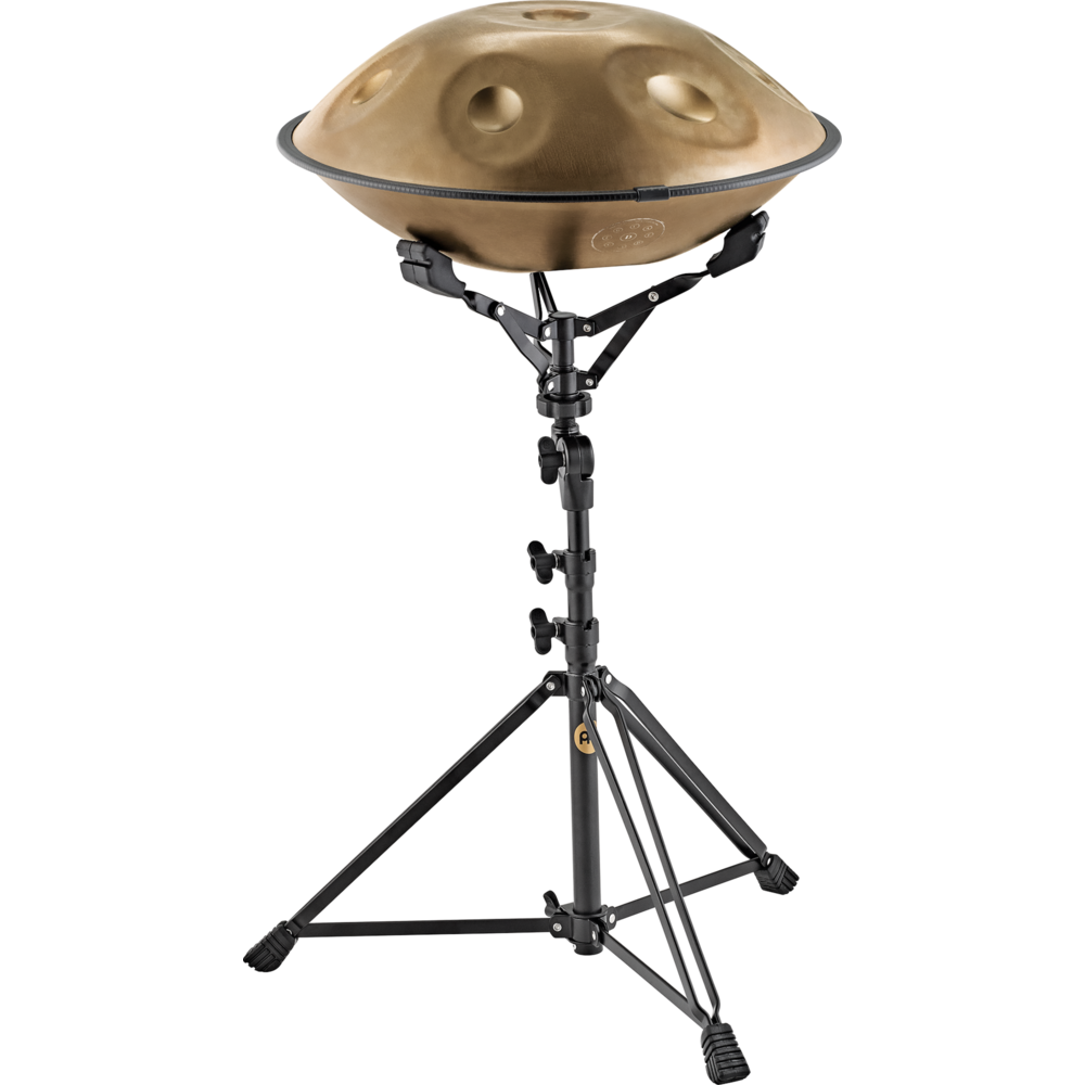The MEINL Handpan Stand has been designed for all common handpans and steel tongue drums. Its compact and stable design, the double-braced construction, provides good hold for the instrument. The stand is adjustable in height and by adjusting the angle of play, the stand can be individually adapted to the playing position. The rubber pads on the tubes also serve as a holder for the steel tongue drum mallets. For transport, the stand can be folded to a practical, space saving size.
