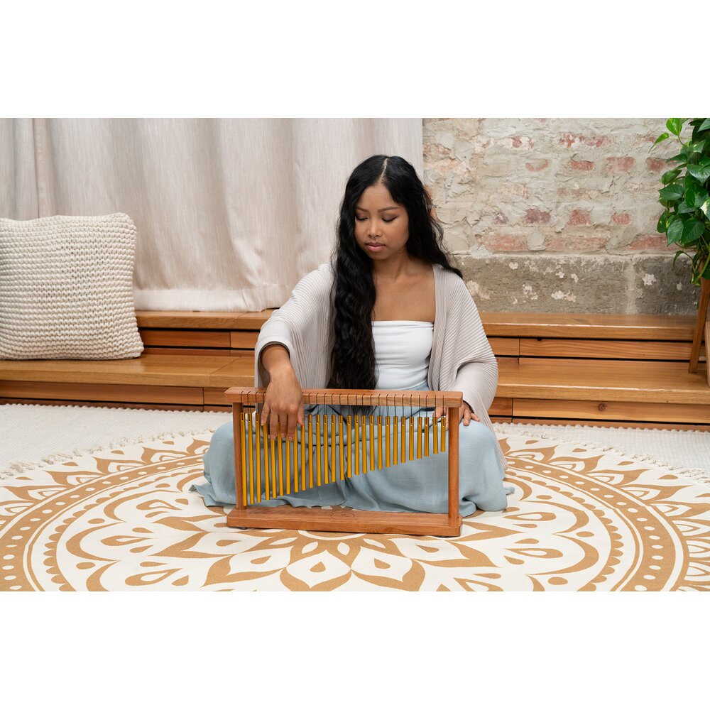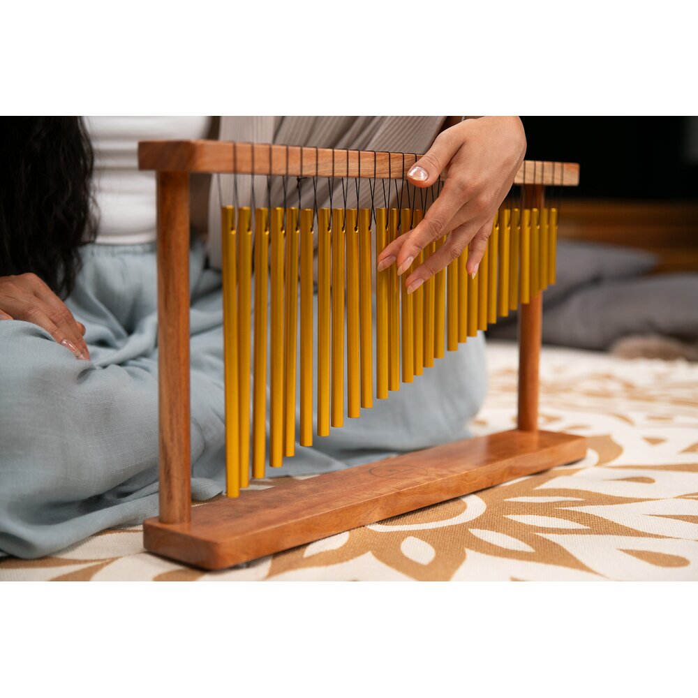 The Meinl Sonic Energy Table Chimes can be placed on tables, shelves, or on the floor. Just put them wherever you like and you are ready for your next sound journey. The chimes produce a beautiful descending tone similar to the tone of a harp but with a metallic tone color. Their soft tones help you to calm your mind and to relax your body.